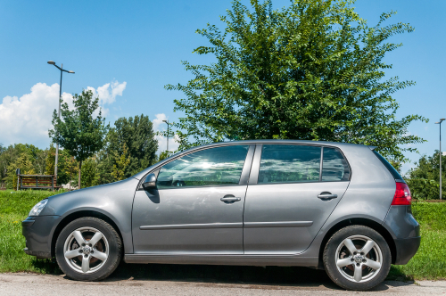 Det var en sølvgrå Vw golf 5-dørs, som havde brede skørter og en helt sort bagrude. Bilen brummede fra udstødningen, og så var der en hvid nummerplade bagpå. Der var ingen logo eller bilmærke bag på bilen.