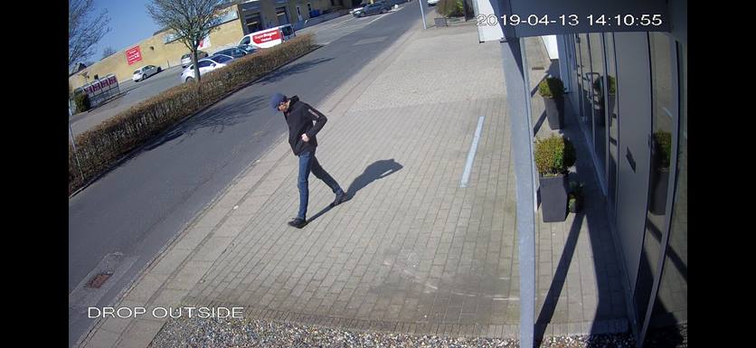 Han er en mand på mellem 20 til 25 år, og med en højde på mellem 180 til 190 cm høj. Han er almindelig af bygning, kort blond hår, og så var han iført en mørk jakke med orangefarvet lynlås på venstre ærme.