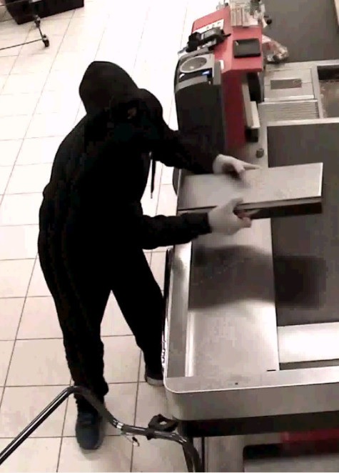 Røveriet fandt sted om aftenen klokken 21.59, da den maskerede mand pludselig trak en kniv og truede sig kassebeholdningen.