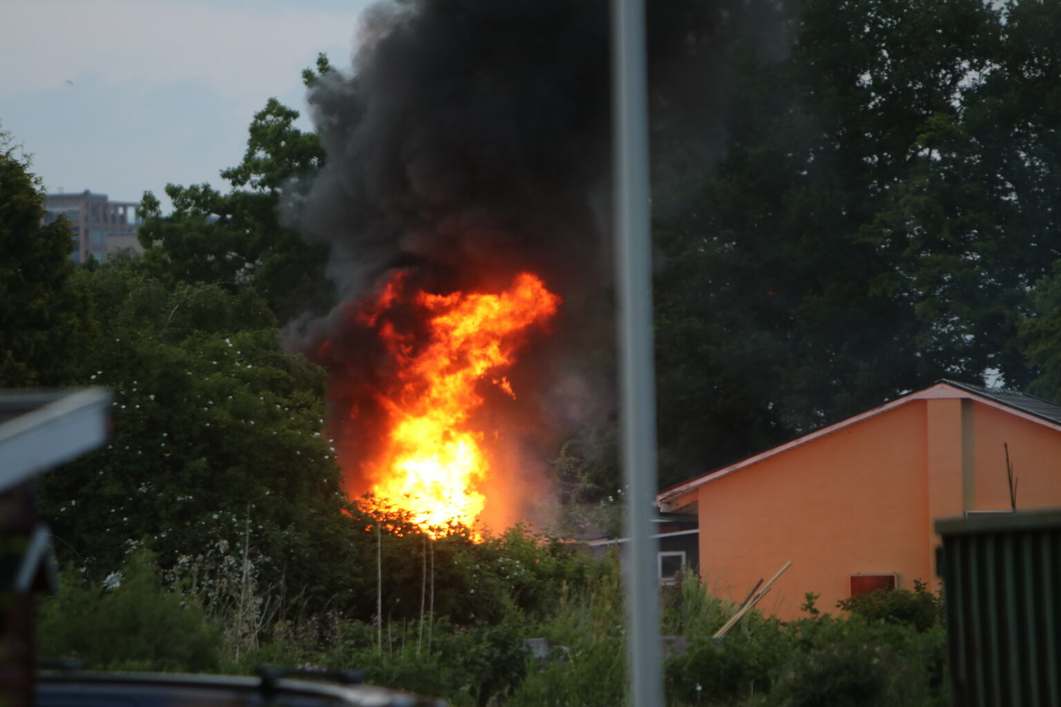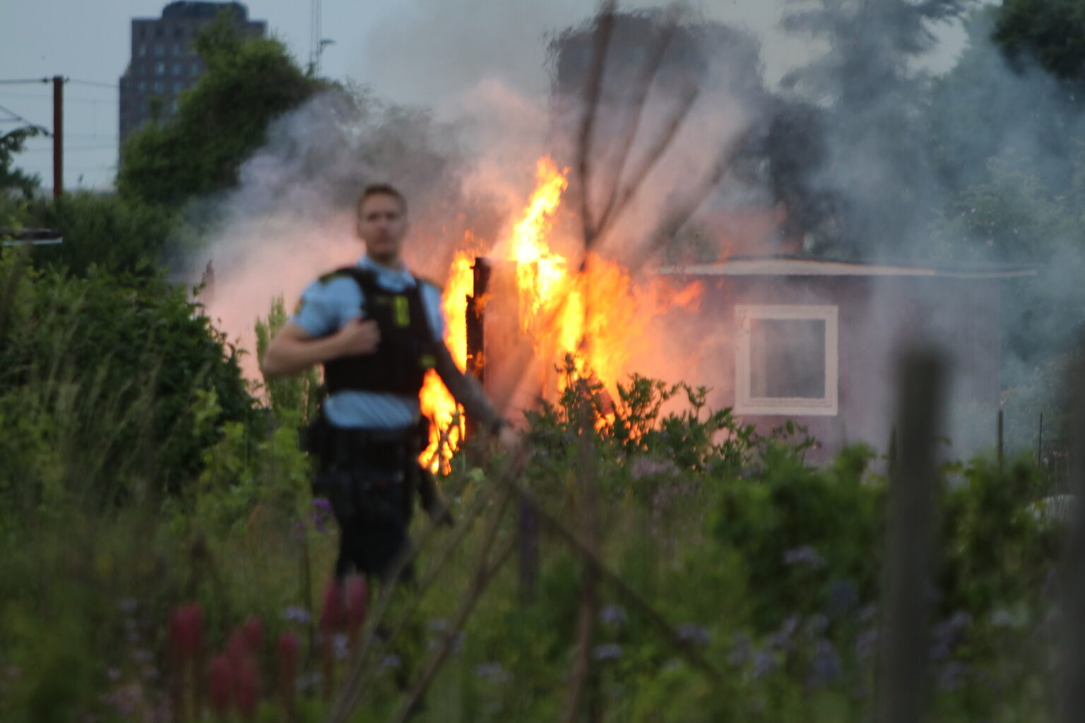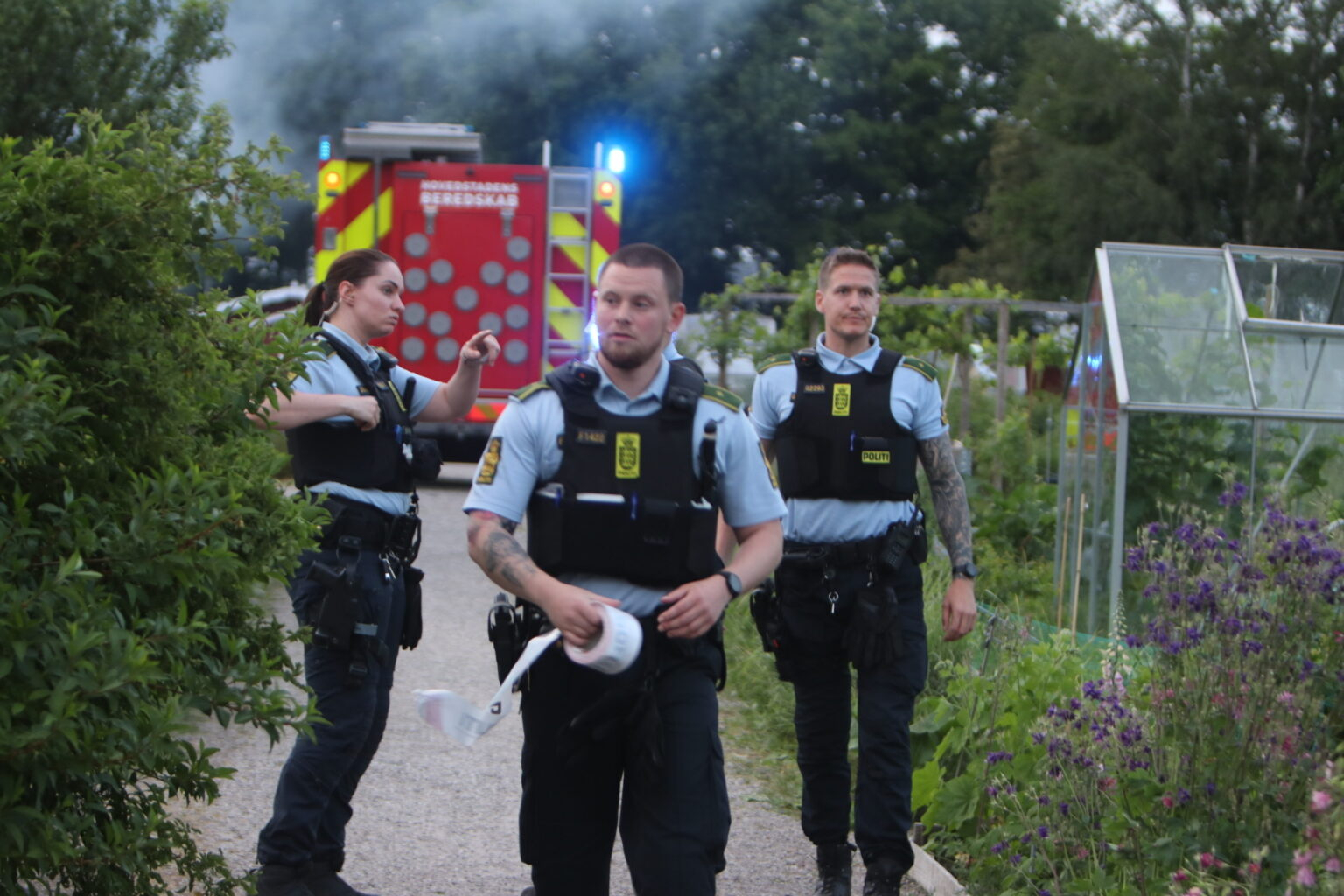 Fredag aften er både politi og brandvæsen til stede ved en voldsom brand, der er brudt ud i en nyttehave på Parkstien i Valby.