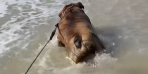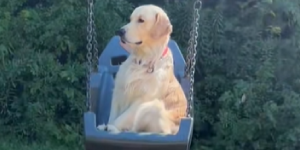 At se en stor Golden Retriever indtage samme positur har vist sig at være uimodståeligt for publikum.