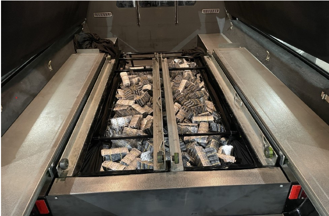 “Manden blev bedt om at køre ind til siden, hvor tolderne scannede rustvognen. Scanningen viste indhold i bilen, der vakte toldernes mistanke. Herefter blev rampen der holdte kisten rullet tilbage, og under rampen kunne tolderne konstatere, at der lå ind til flere bundter pakker med piller. Herefter blev politiet tilkaldt, fortæller kontroldirektør i Toldstyrelsen,” Michael Lund.