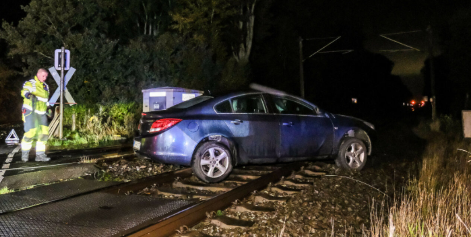 En beruset bilist parkerede nemlig ifølge Presse-fotos.dk sin bil på jernbaneoverskæringen ‘Quellental’ ved Neumünster-Flensburg i Tyskland sent lørdag aften, hvorefter vedkommende flygtede fra stedet til fods.