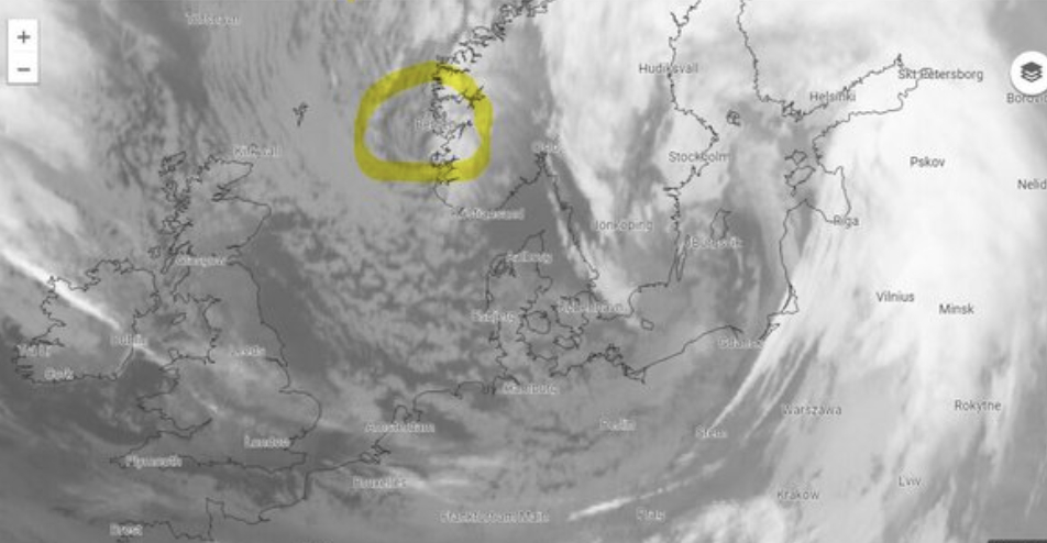 “Lige nu holder meteorologerne hos DMI særligt øje med denne lille hvirvel (det de kalder en kyst-jet), som har retning mod den nordvestlige del af Danmark.”