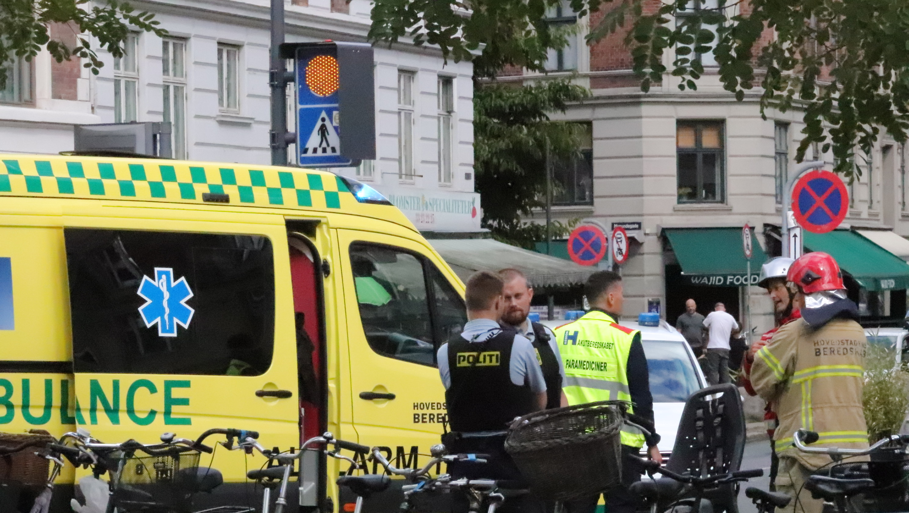 Det gik ud over en medarbejder i en smørrebrødsforretning på Enghaveplads i København, og vedkommende er kørt på hospitalet efter en mindre brand.