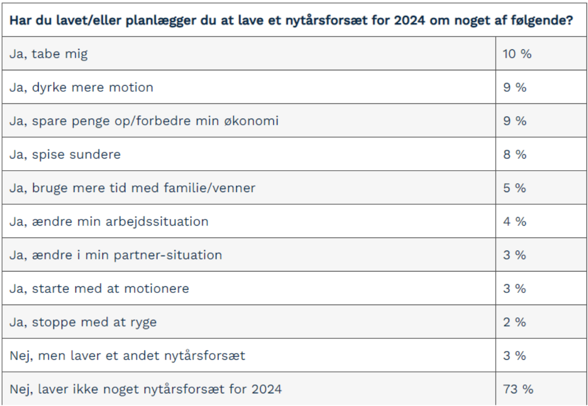Har du lavet/eller planlægger du at lave et nytårsforsæt for 2024 om noget af følgende?