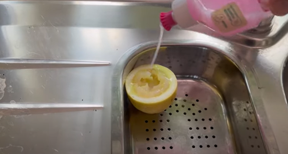 Ved at skrubbe vasken med en citronhalvdel og en lille mængde opvaskemiddel kan du hurtigt få overfladen til at skinne igen.
