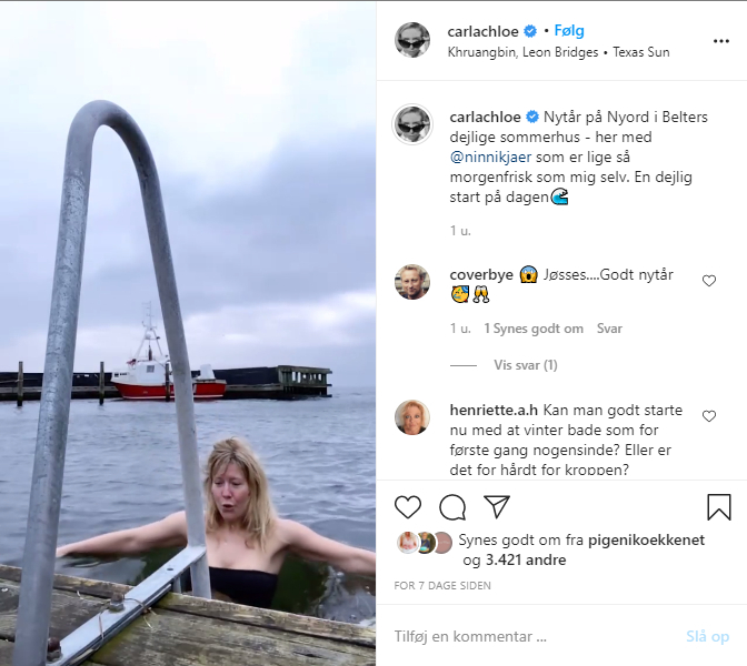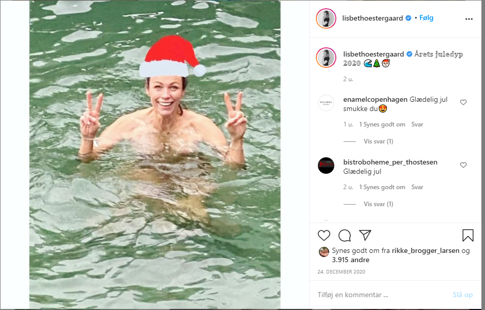 På Instagram kan man også se, at tv-værten Lisbeth Østergaard tog sig en juledukkert, og det samme gjorde Vild med dans-stjernen Mie Moltke, der blandt andet var en tur i vandet kort inden nytår.