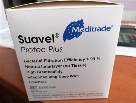 Der er tale om type II medicinske mundbind af mærket SUAVEL® PROTEC PLUS med referencenummer REF80-955MP fra producenten Meditrade GmbH, Tyskland. De forfalskede mundbind kan identificeres ved hjælp af disse billeder og kendetegn: