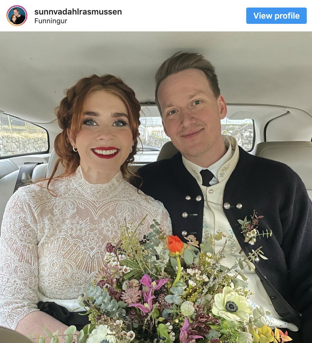 Sunnvá har også delt et Instagram-opslag med sine følgere, som dog både viser hende og sin mand med teksten: ‘Mand og kone’.