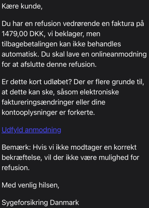 Sygeforsikringen gør opmærksom på, at man skal være ekstra opmærksom, hvis der nævnes konkrete beløb i mails.