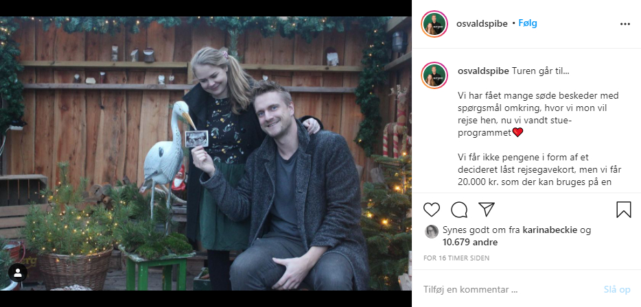 “Vi har allerede brugt pengene på en lidt anden slags rejse. En fertilitetsrejse og en rejse, der forhåbenligt vil vare ved for livet og skabe mere glæde end vi kan drømme om. Sidst på foråret bliver Saga nemlig storesøster.”
