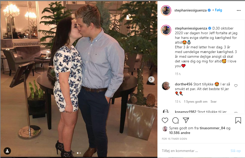“D.30 oktober 2020 var dagen hvor Jeff fortalte at jeg har hans evige støtte og kærlighed for altid. Efter 3 år med latter hver dag. 3 år med uendelige mængder kærlighed. 3 år med samme dejlige ansigt så skal det være dig og mig for altid. I love you.”