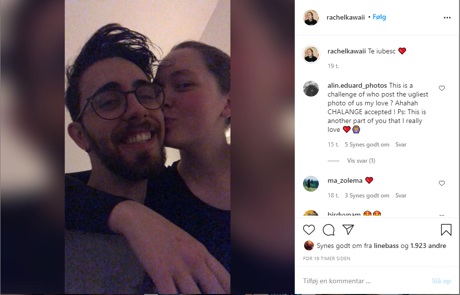 Eduard er fra Rumænien, men bor i København. Der er over 26.000, der følger med i Rachels liv på Instagram, og de har faktisk fået lov til at se Eduard før Rachels forældre. Lars Ellebye og Theresia Treschow-Kühl har nemlig ikke mødt den nye kærlighed. Men mon ikke de er ligeså vilde med Eduard som Rachels følgere på Instagram. Efter hun lagde et billede op af hende og Eduard sammen, er det strømmet ind med lykønskninger. Du kan læse et par stykker af de søde ord herunder, og du kan se Rachels opslag lige her.