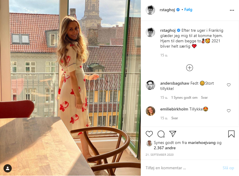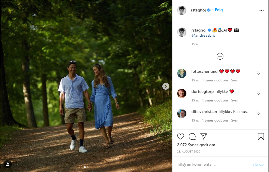 Det var også på Instagram, at Rasmus Staghøj for fire måneder siden afslørede, at parret skulle være forældre.