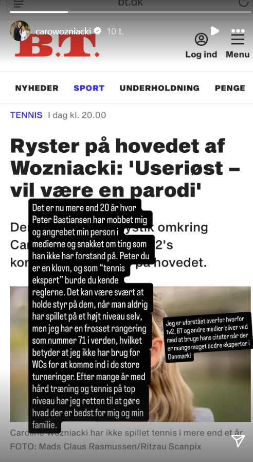 Det er sjældent, at Wozniacki går til personligt angreb, men denne gang var tålmodigheden tilsyneladende brugt op. I sit opslag skriver hun: