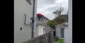 Overvågningskameraet i elevatoren fangede hele episoden, og videoen er nu blevet delt på sociale medier, hvor Thiago hyldes som en helt.