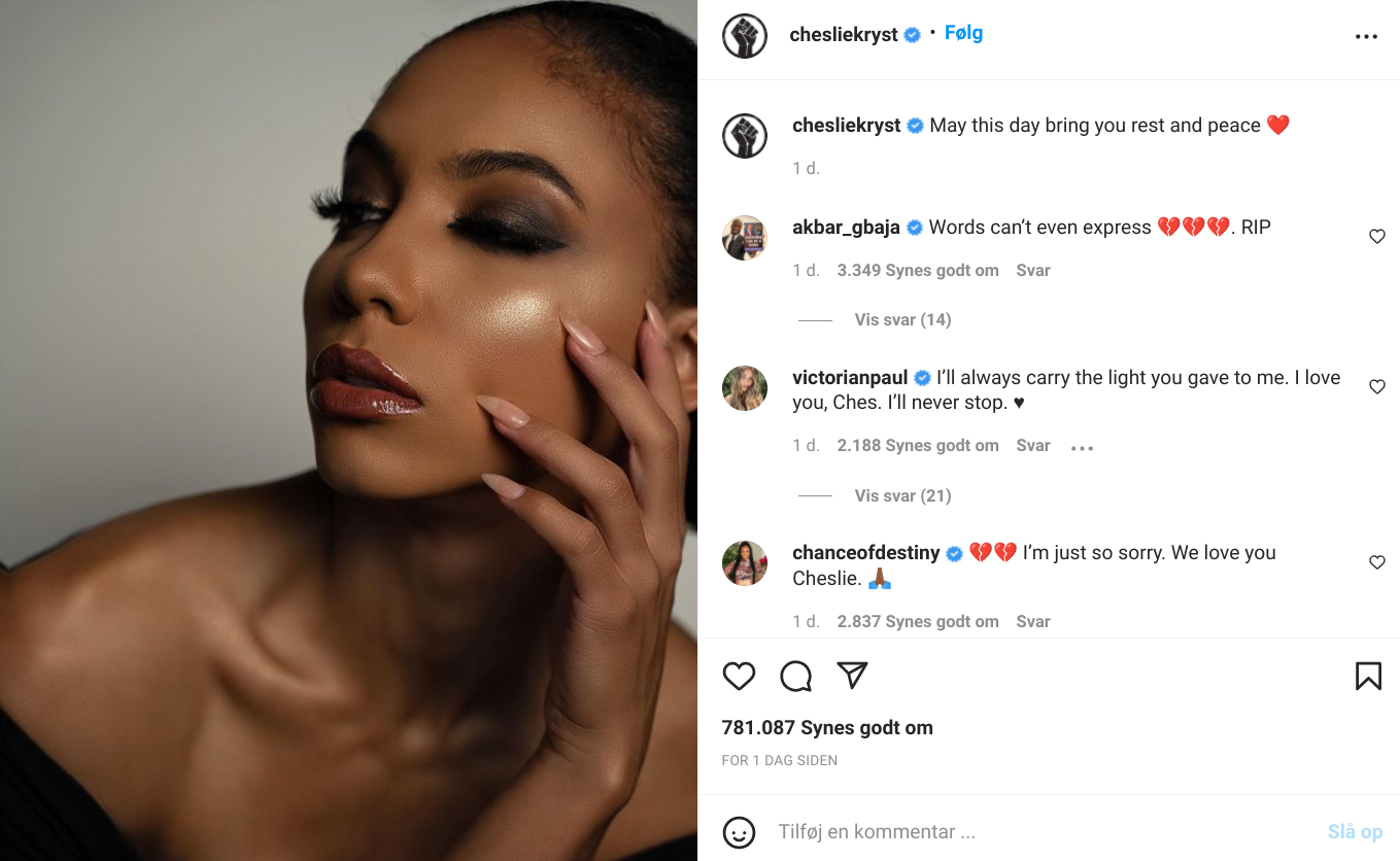 Kun få timer inden modellens død, blev et opslag delt på hendes instagramprofil til hendes 521.000 følgere, hvor der stod: “Må denne dag bringe dig ro og fred.” Opslaget har i skrivende stund fået næsten 800.000 ‘likes’ og mere end 50.000 kommentarer.
