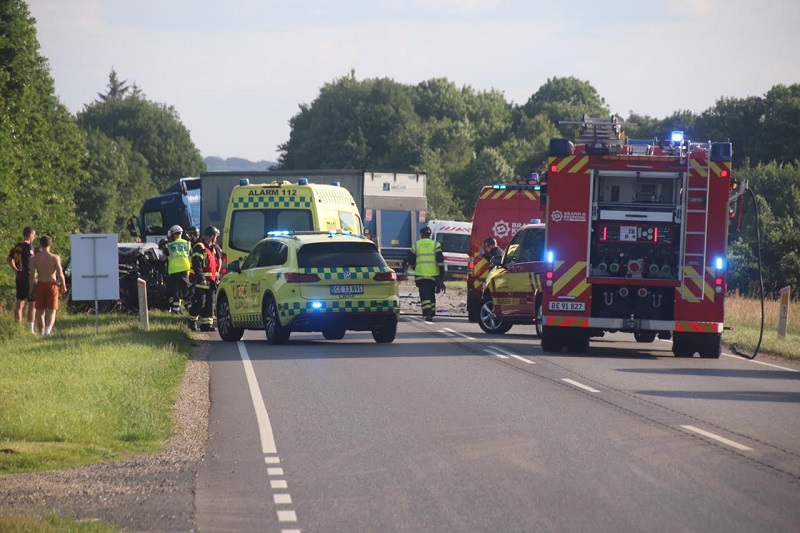 Kilder til Dagens beretter om, at der er mindst en person fastklemt. Derudover viser de seneste billeder fra ulykkesstedet, at der også er ankommet en lægehelikopter.