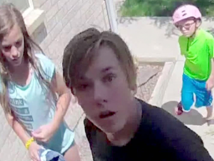 Det beviser en video, som Carlton, der bor i Colorado, har delt fra sit sikkerhedskamera, der overvåger forsiden af hans hus, fangede de tre børn, der nærmede sig hans dør.