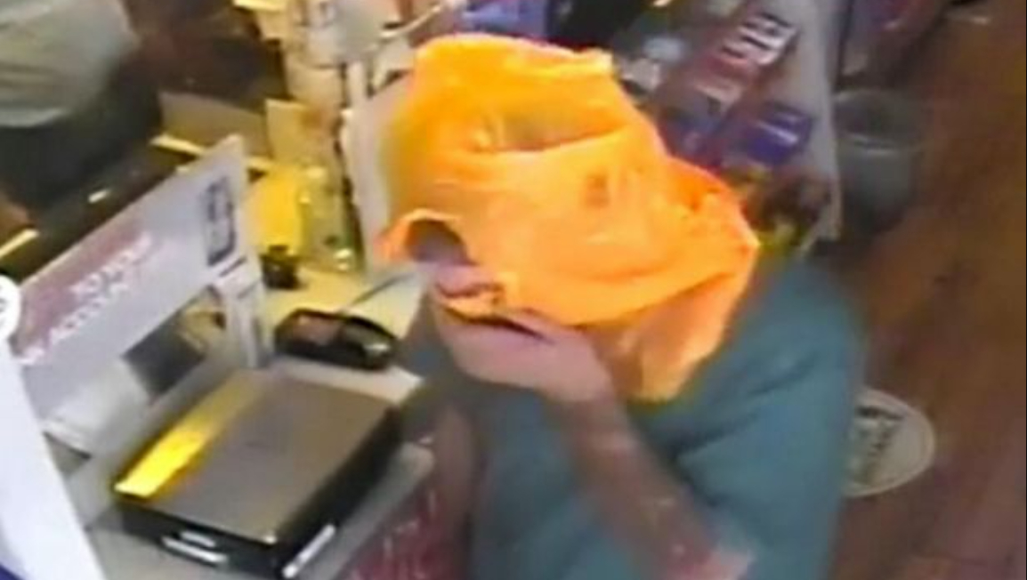 Den 29-årige Jed James, havde skåret et stort hul i posen, så han kunne se hvor han gik, men samtidig gav sin identitet ‘væk’. Hullet var nemlig så stort, at han let kunne genkendes på overvågningen.