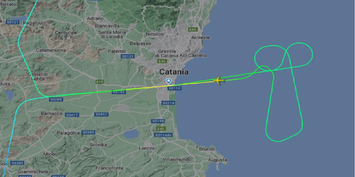 Før det forlod Catanias luftrum, blev flyet set på vej mod øst mod den sicilianske kyst og flyve på en sådan måde, at flyvevejen skabte formen af mandlige kønsorganer, ifølge billeder optaget af flytrafikwebstedet Flight Radar. Mønsteret tog omkring 16 minutter at færdiggøre.