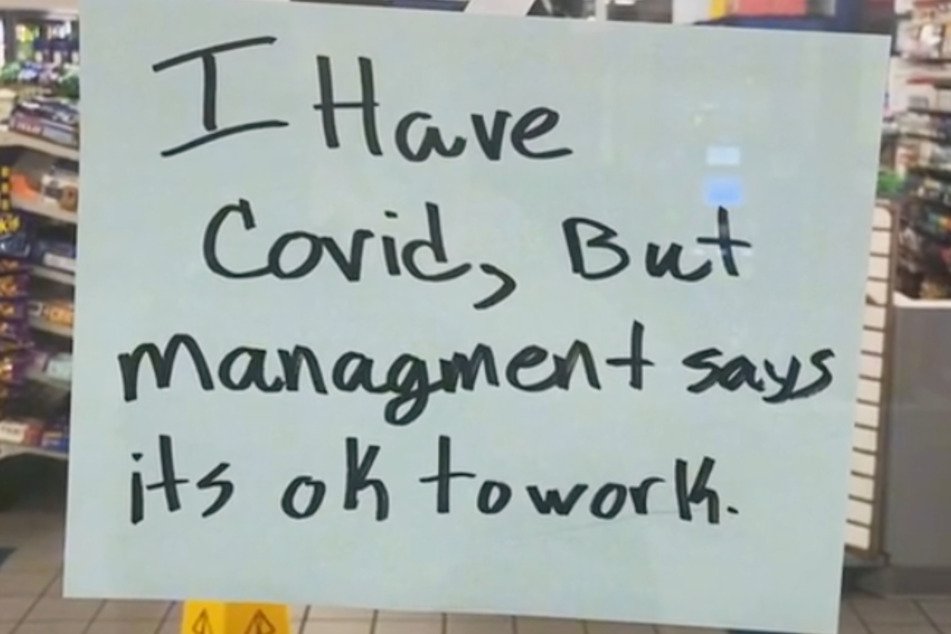 “Jeg har corona, men ledelsen synes, det er i orden at arbejde alligevel,” har han skrevet på skiltet, som han har hængt op på døren, lyder det fra TAG24.
