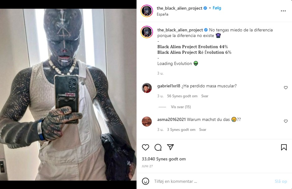 På sin Instagram-profil kaldet for ‘the_black_alien_project’, følger mere end 1,2 millioner mennesker med i den store transformation.