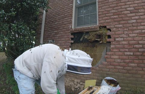 De uindbudte gæster, der havde forårsaget lyde fra muren, var nemlig bier, og David er ekspert i at gøre folk fri for dem og flytte bikolonier.