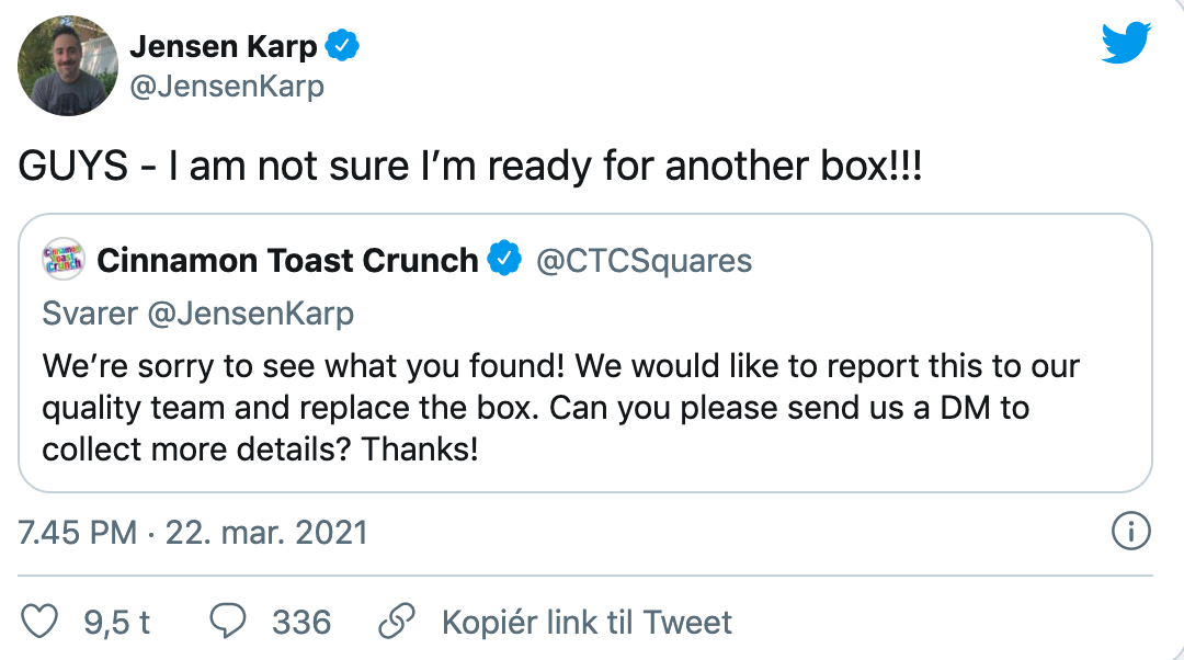 Det endte med, at Cinnamon Toast Crunch manede til ro.