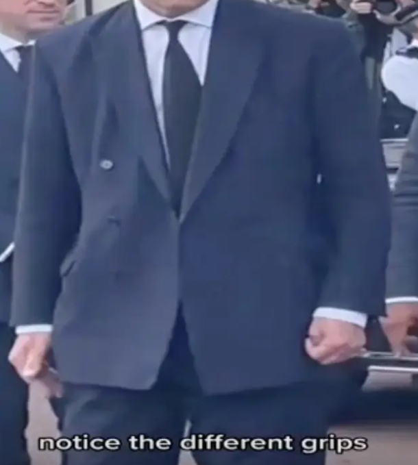 Som det fremgår af billederne ovenfor, har TikTok-brugeren Jason zoomet ind på hænderne på et par af kongens formodede bodyguards og mener, at de er helt stille.