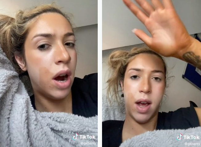 “Jeg brugte selvbruner i mit ansigt for at give det lidt kontur,” siger Grace i videoen, som hun har delt under brugernavnet @gkbarry.