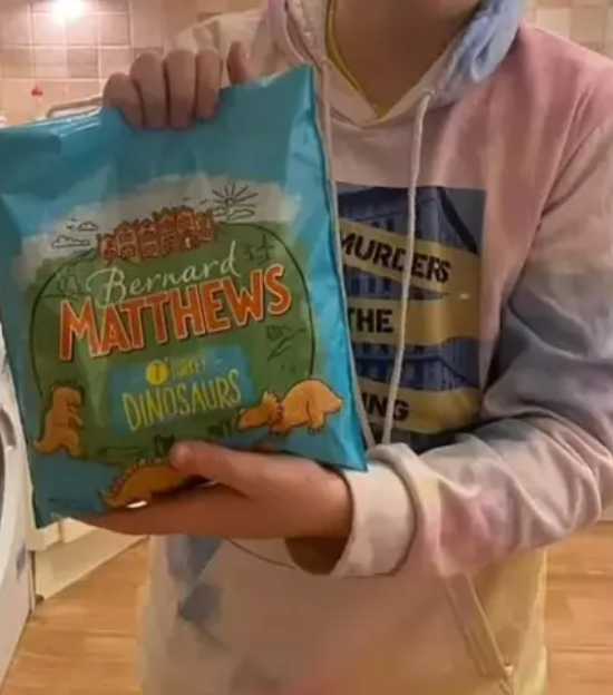 Efter Cassie delte billedet af posen med “Bernard Matthews Turkey Dinosaurs” på sociale medier, tog historien hurtigt fart.