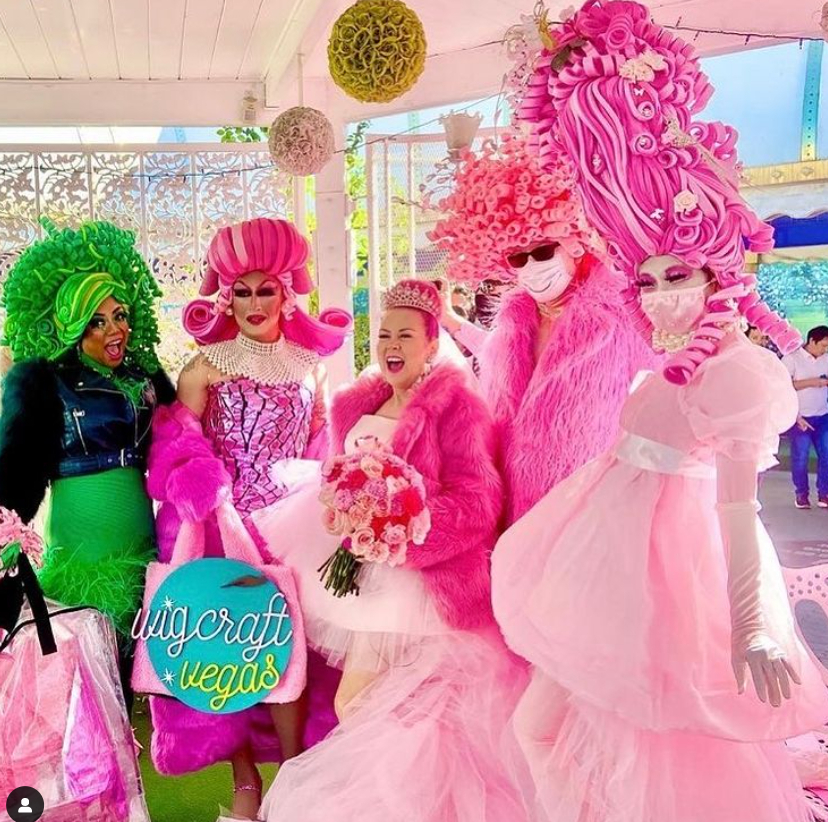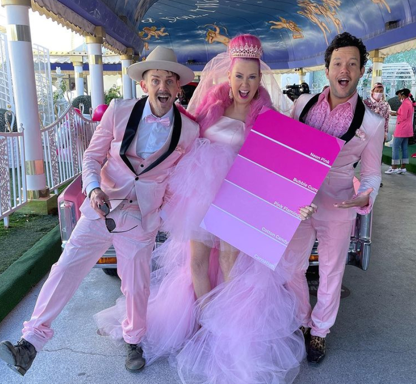 D. 1. januar 2022 afholdte Sera et historisk bryllup i Las Vegas, hvor man i hvert fald ikke var i tvivl om, at der var et farvetema. Først og fremmest var brudgommen en kæmpe stor pink farveprøve med fem forskellige nuancer af pink.