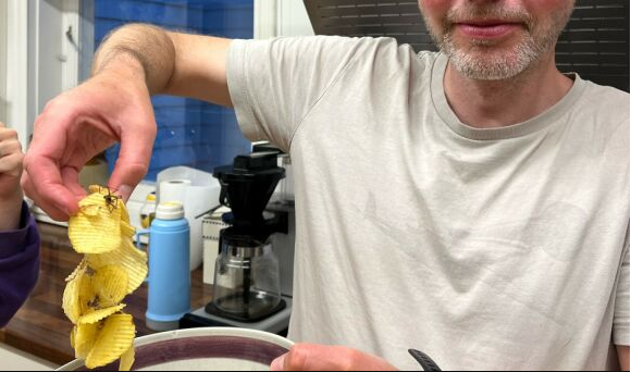 Efter at alle i familien havde forsynet sig med kartoffelchipsene, gjorde Kjellsvig en opsigtsvækkende opdagelse.