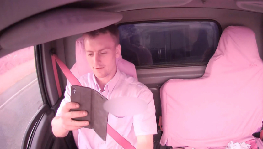 En video optaget af et ‘dash cam’ i lastbilens førehus er kommet frem, og her kan man se Cowgill sidde og lave alt mulig andet end at have fokus på vejen.