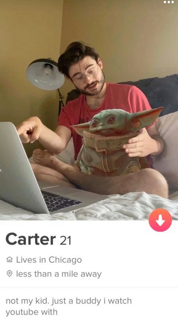 Carter Hambley lagde et billede på Tinder, hvor det lignede, at han sad med Star Wars karakteren Baby Yoda på skødet.