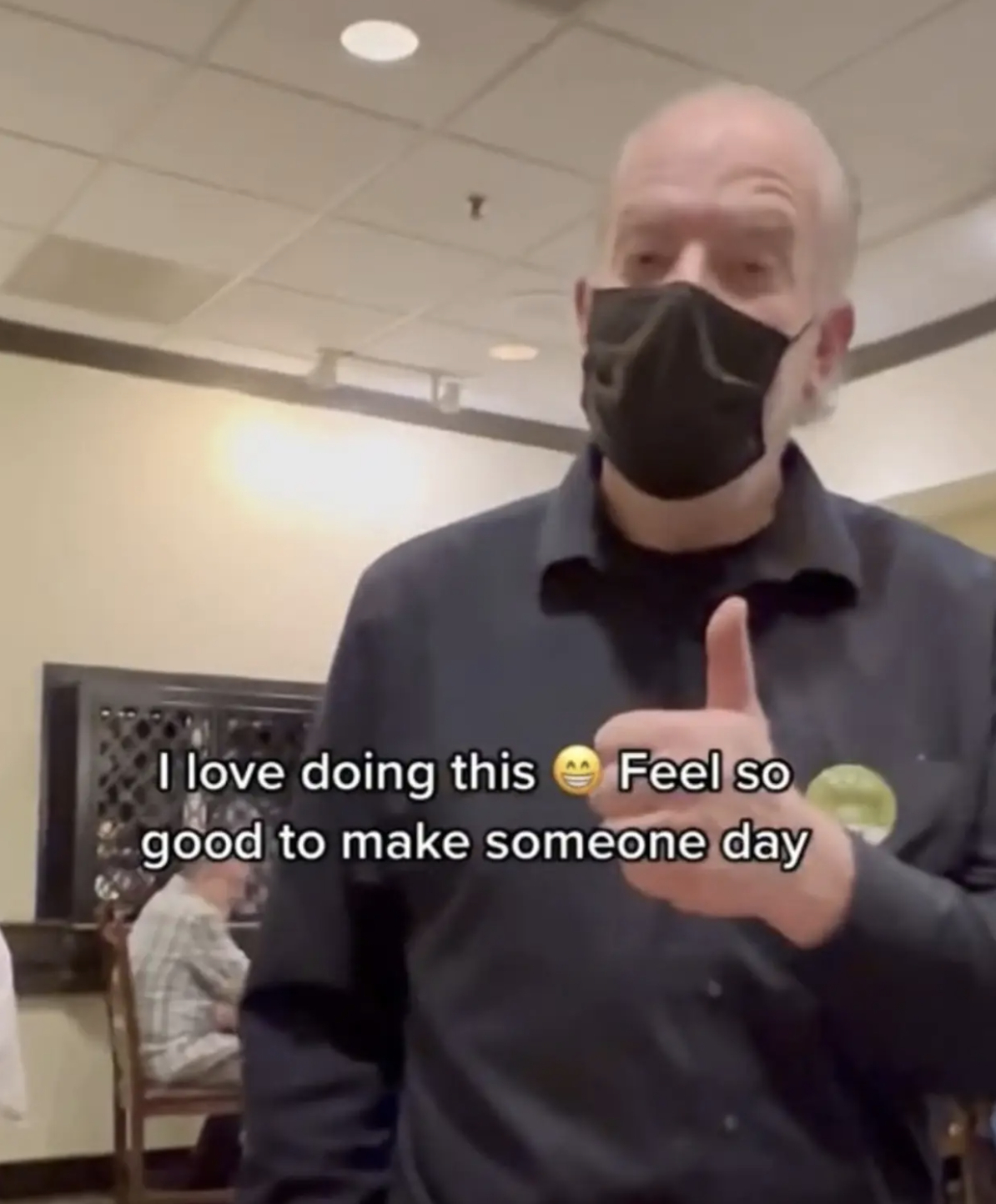 “Jeg elsker at gøre det her. Det føles så godt at gøre nogens dag god,” skriver han til videoen.