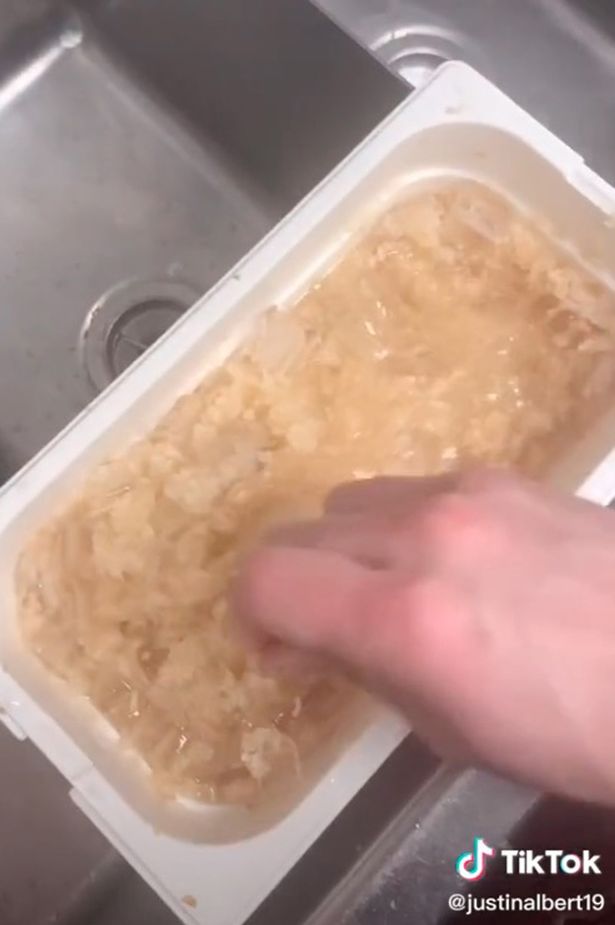 De fjerner dermed al væsken, så de kan konservere dem. Han smider dem efterfølgende i en bøtte, hvorefter han tilføjer noget is.