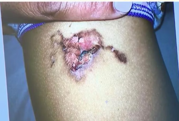 Efter at have fået sin mad, endte den lille pige med at tabe en varm nugget ned i skødet. Den kom derfor i klemme mellem hendes ben og autostolen. Her har den ifølge familie givet Olivia en andengradsforbrænding.