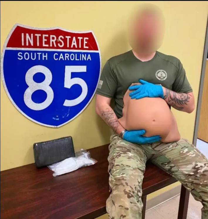 To personer blev anholdt af politiet i South Carolina, USA, efter at narkotika faldt ud af en falsk gravid mave, som en af dem bar på. De blev taget til fange i den fattige bydel Campo Grande, hvor politiet rutinemæssigt patruljerer områder for at finde narkotika.