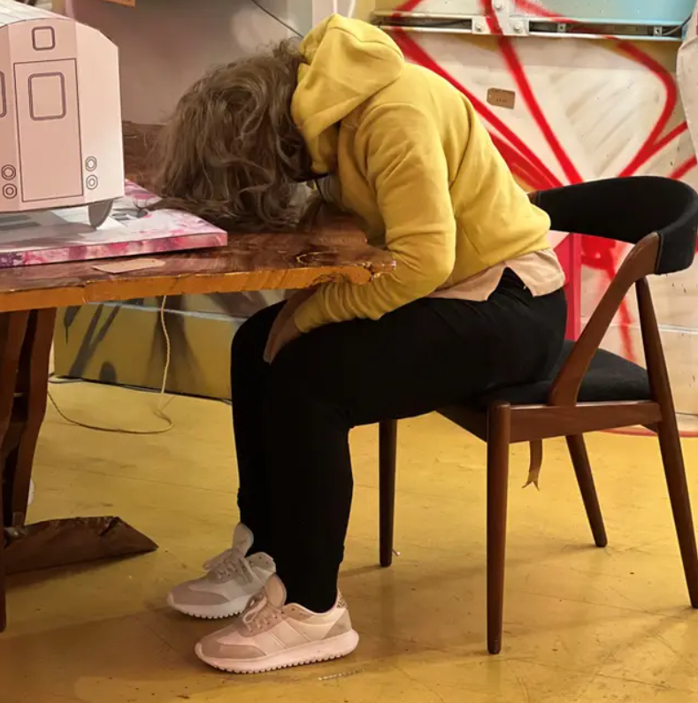 Det har siden vist sig, at den bevidstløse ‘person’ var et kunstværk med titlen ‘Kristina’ lavet af den amerikanske kunstner Mark Jenkins som et portræt af hans egen søster, der engang faldt i søvn med hovedet i en skål suppe.