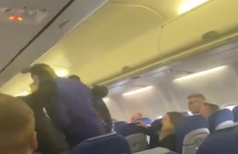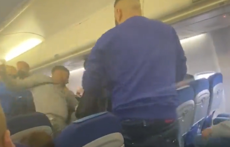 Piloten måtte blande sig i slagsmålet / Foto: Twitter / The Sun