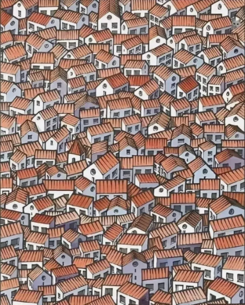 Hvis du selv vil prøve, så gør det nu, inden du scroller videre. Kig efter en lille detalje, der ikke helt passer ind blandt de mange tagsten og skygger.