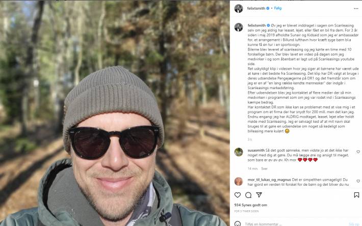 “Øv jeg er blevet inddraget i sagen om Scanleasing selv om jeg aldrig har leaset, lejet, eller fået en bil fra dem. For 3 år siden i maj 2019 afholdte Sunair og Kidsaid som jeg er ambassadør for, et arrangement i Billund lufthavn hvor kræft syge børn bl.a kunne få en tur i en sportsvogn,” fortæller Felix Smith.
