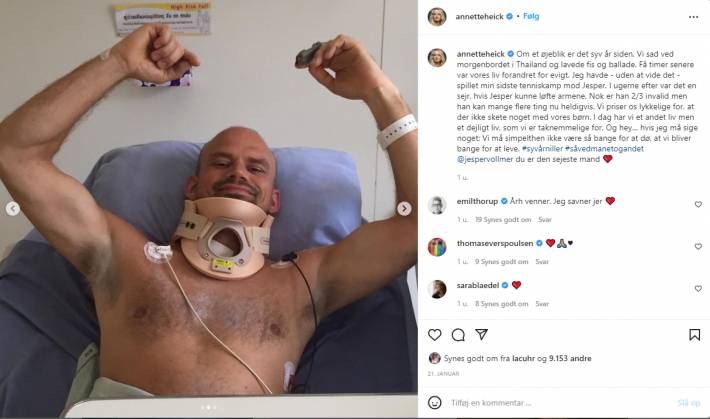 Men scroller man videre, kan kan også se Jesper Vollmer, Annette Heicks mand, liggende i en hospitalseng.