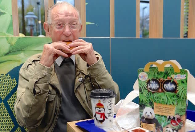 Seks dage om ugen spiser han det samme måltid mad: En ‘Happy Meal’, og seks dage om ugen sidder han ved det samme bord på restauranten. Det er kun søndage, han springer over, fordi han da er inviteret til søndags-middag hos sit gudbarn.