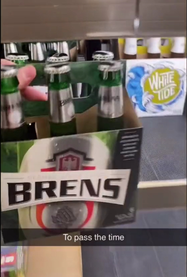 Han skifter dog hurtigt spor og peger over på alkoholafdelingen og siger: “Der er også en masse alkohol på den hylde,” og man kan blandt andet se ham udforske vinafdelingen, mens der på skærmen står: “Venter stadig på at blive lukket ud. Opgraderer til vin, da jeg føler, at jeg ejer stedet.”