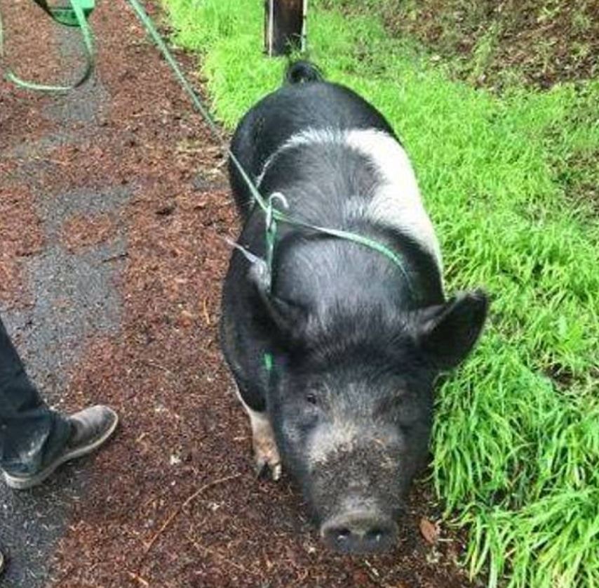 DailyMail skriver, at politiet fandt den 200 kilo tunge gris på en grund i nærheden, og de bad ejeren af grunden om at passe på grisen. Det lovede han politiet, at han nok skulle gøre, og de kunne derfor kontakte ejeren i ro og mag.